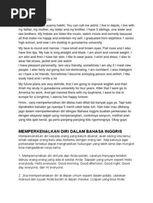 Berikut contoh perkenalan diri bahasa inggris untuk berbagai situasi yang dapat kamu praktekkan untuk mengasah kemampuan bahasa inggrismu. Karena tidak fasih berbahasa lisan dan lain sebagainya. Cara perkenalan diri dalam bahasa inggris. Jika anda hanya mengikuti kelas karena sebuah keharusan (seperti kursus pendidikan umum yang semua murid harus ikuti), tidak perlu mengatakannya—kemungkinan . Secara umum dan paling dasar dalam memperkenalkan diri, .
